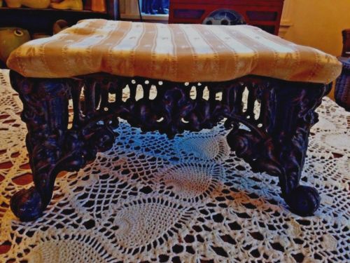 Title (ebay affiliate link): VINTAGE ORNATE CAST IRON FOOT STOOL OTTOMAN ART NOUVEAU VICTORIAN STYLE ~ HEAVY