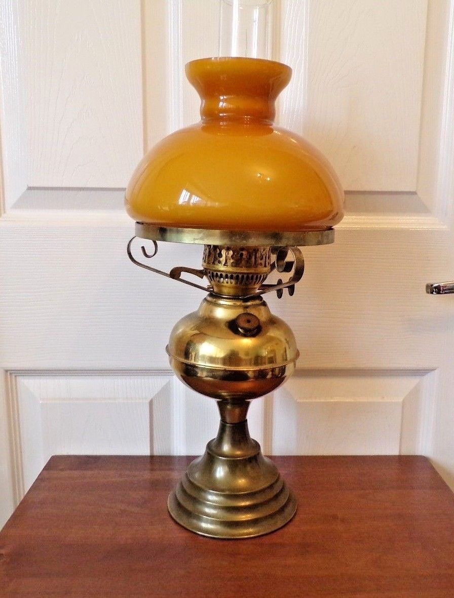 Title (ebay affiliate link): A vintage brass oil lamp with Amber shade Duplex twin burner working order