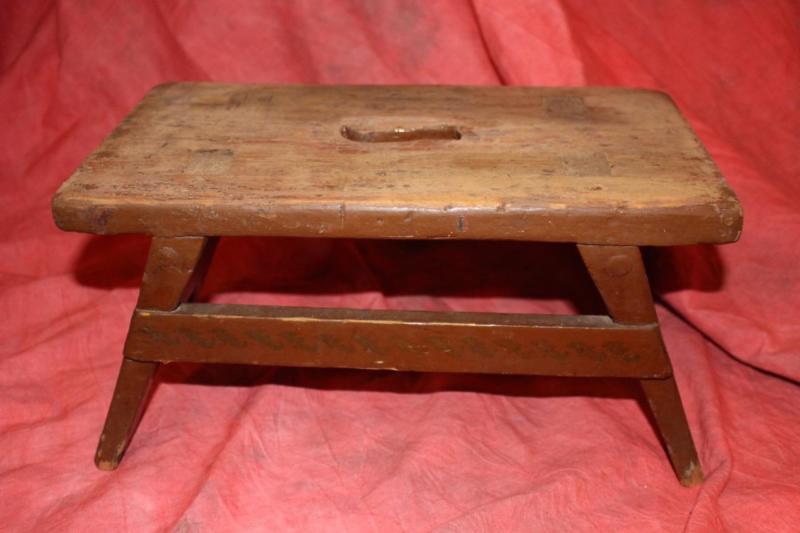 Antique Sturdy Mortised Stool In Old Paint