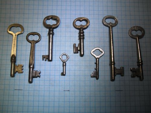 Title (ebay affiliate link): LOT OF 8 ANTIQUE SKELETON, FURNITURE, BARREL, CABINET AND OLD LOCK KEYS