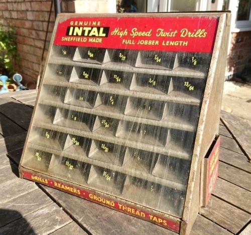 Vintage Intal shop display drill bits haberdashery cabinet specimen collector