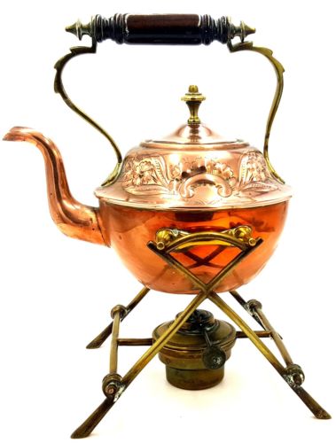 Title (ebay affiliate link): 19th century Copper Tea Kettle with brass stand and oil lamp