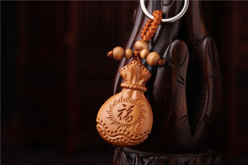 Title (ebay affiliate link): Wood 3D Carving Chinese Moneybag Wealth Statue Sculpture Pendant Key Chain