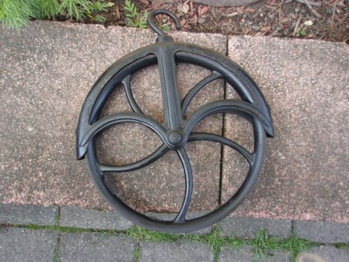 Title (ebay affiliate link): ANTIQUE CAST IRON WHEEL WELL BARN PULLEY