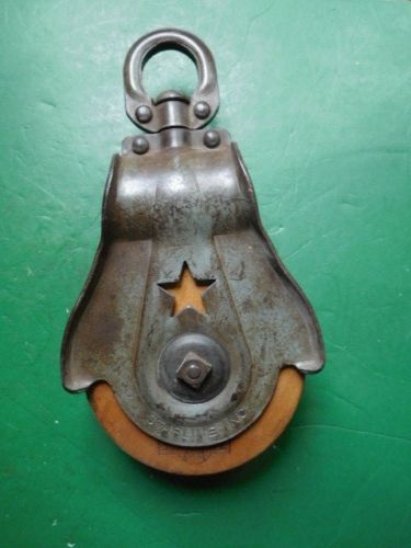 Title (ebay affiliate link): Antique Vintage Cast Iron & Wood Starline Barn Pulley Old Tool