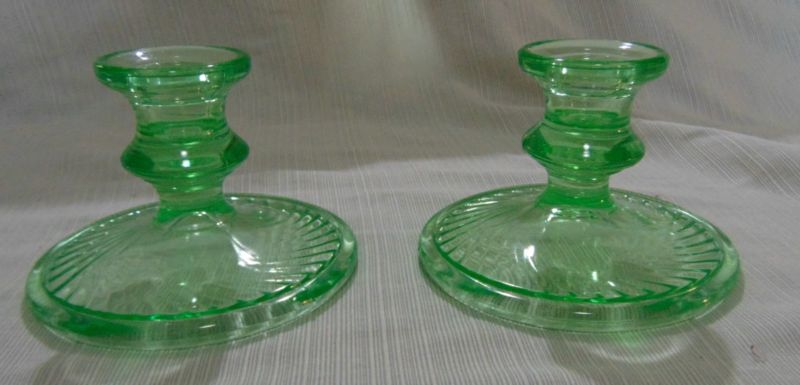 Title (ebay affiliate link): Vintage green glass candlesticks in swirl pattern- 5 inch diameter base