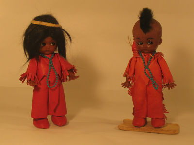 2 Antique OGLALA SIOUX Leather Indian Doll Lot Signed