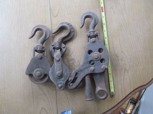 3 ANTIQUE VINTAGE DOUBLE PULLEY BLOCK TACKLE
