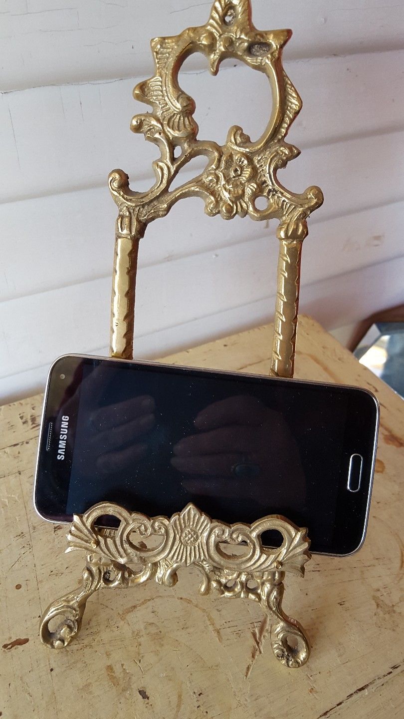 Title (ebay affiliate link): Vtg Brass Display Easel Ornate Book Art Work Menu Music Photo CellPhone Stand Lg
