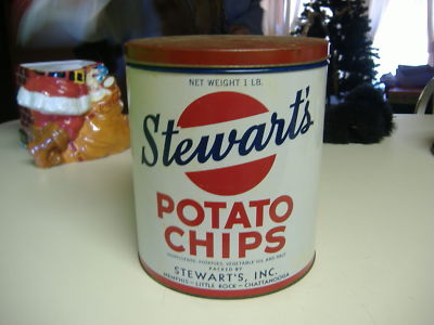 VINTAGE STEWARTS POTATO CHIP TIN 1960'S METAL CAN & LID