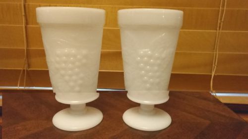 Title (ebay affiliate link): 2 Vintage White Milk Glass Footed Goblets/Glasses With Grapes & Leaves Pattern
