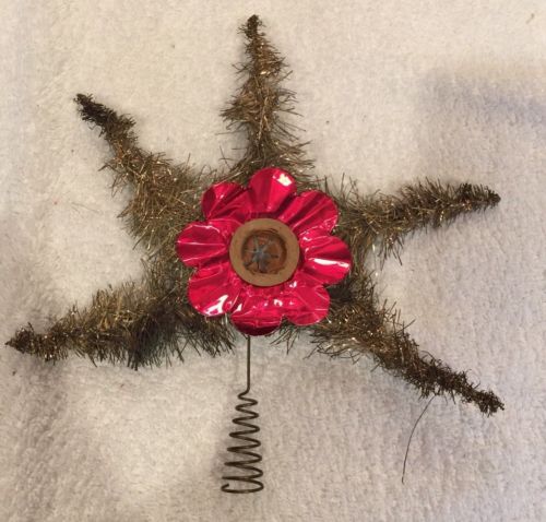 Title (ebay affiliate link): antique vintage tinsel & red foil christmas tree topper for electric light