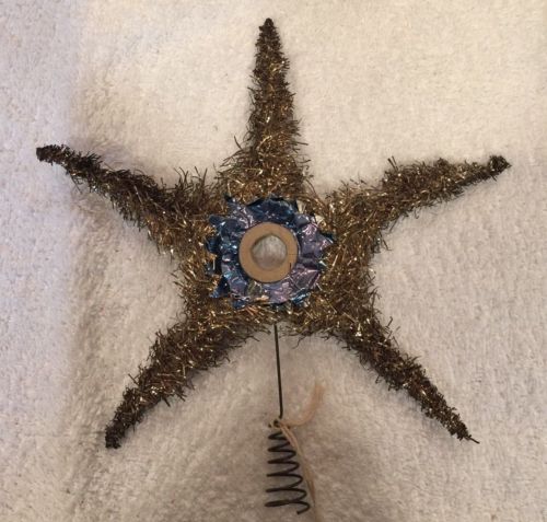 Title (ebay affiliate link): antique vintage tinsel & blue foil christmas tree topper for electric light