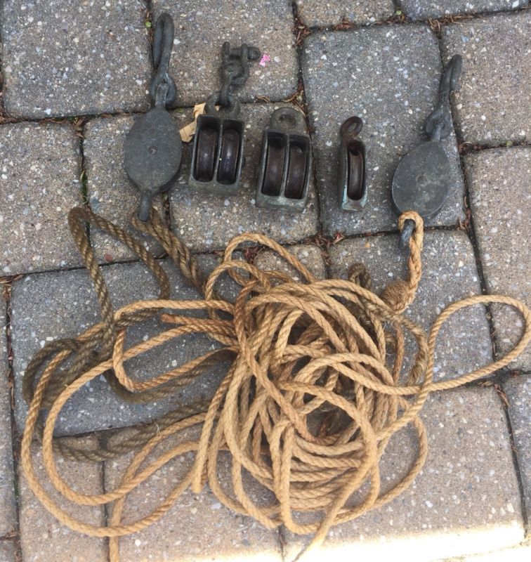 Title (ebay affiliate link): Vintage Block and Tackle Metal Steel Barn Pulley Lot w/ Hook & Rope