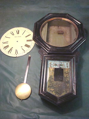 Antique New Haven Wall Clock Parts Case Face Pendulum