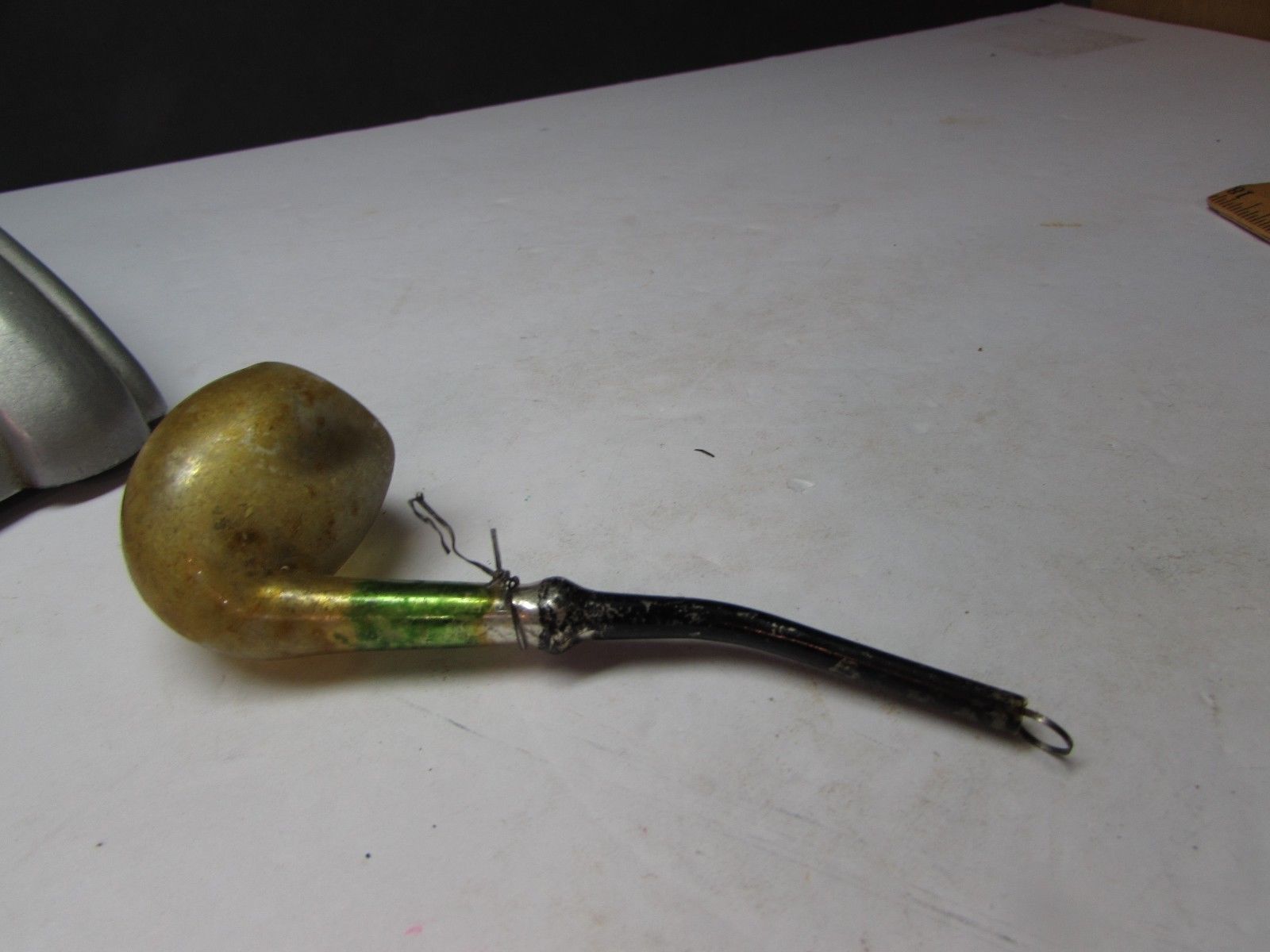 SUPER VINTAGE BLOWN GLASS MANS PIPE CHRISTAMS ORNAMENT