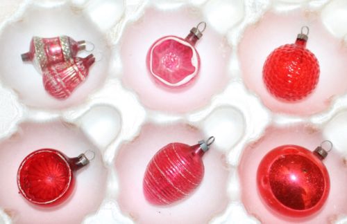 Title (ebay affiliate link): Seven, all red Glass German Ornaments. Indents, Bells, Spheres. All Smaller