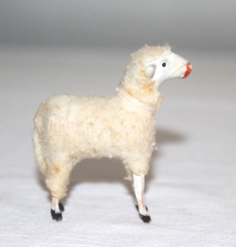 Title (ebay affiliate link): 5th Early 1900s Wooly Sheep. Wooden Legs, Wool-wrapped Body White Collar German