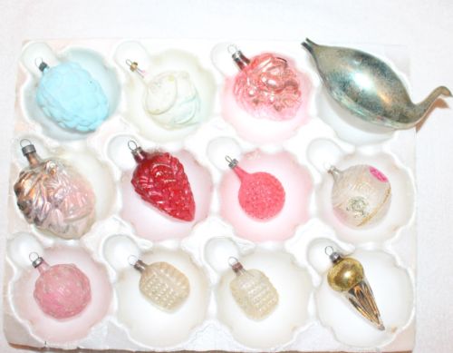 Title (ebay affiliate link): Twelve Acorns, Geometric Cubes, Cones, etc. Early 1900s Glass German Ornaments.