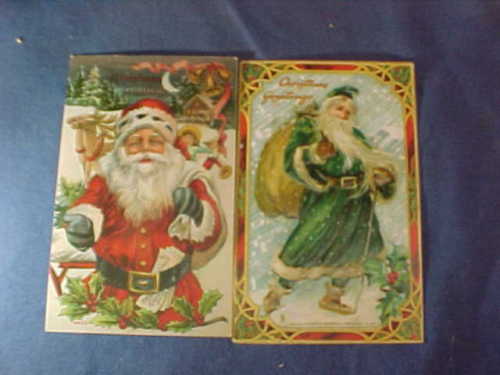 2-1910 CHRISTMAS Postcards w SANTA Design GREEN COAT by Raphael TUCK etc