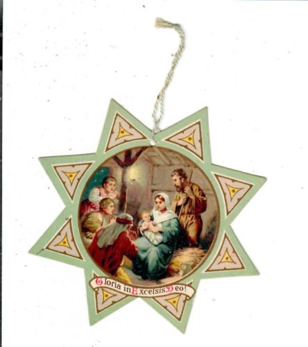 Title (ebay affiliate link): Holy Family, in Stable, visited by Shepherds. Early 1900s German Paper Ornament