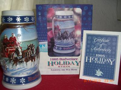Title (ebay affiliate link): Budweiser Holiday Stein 1995 Lighting The Way Home