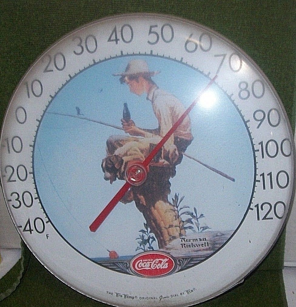 Title (ebay affiliate link): Drink Coca-Cola, Norman Rockwell Print Tru Temp Original Jumbo Dial Thermometer
