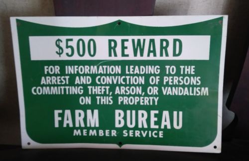 vintage Farm Bureau sign - metal - reward late 60`s era