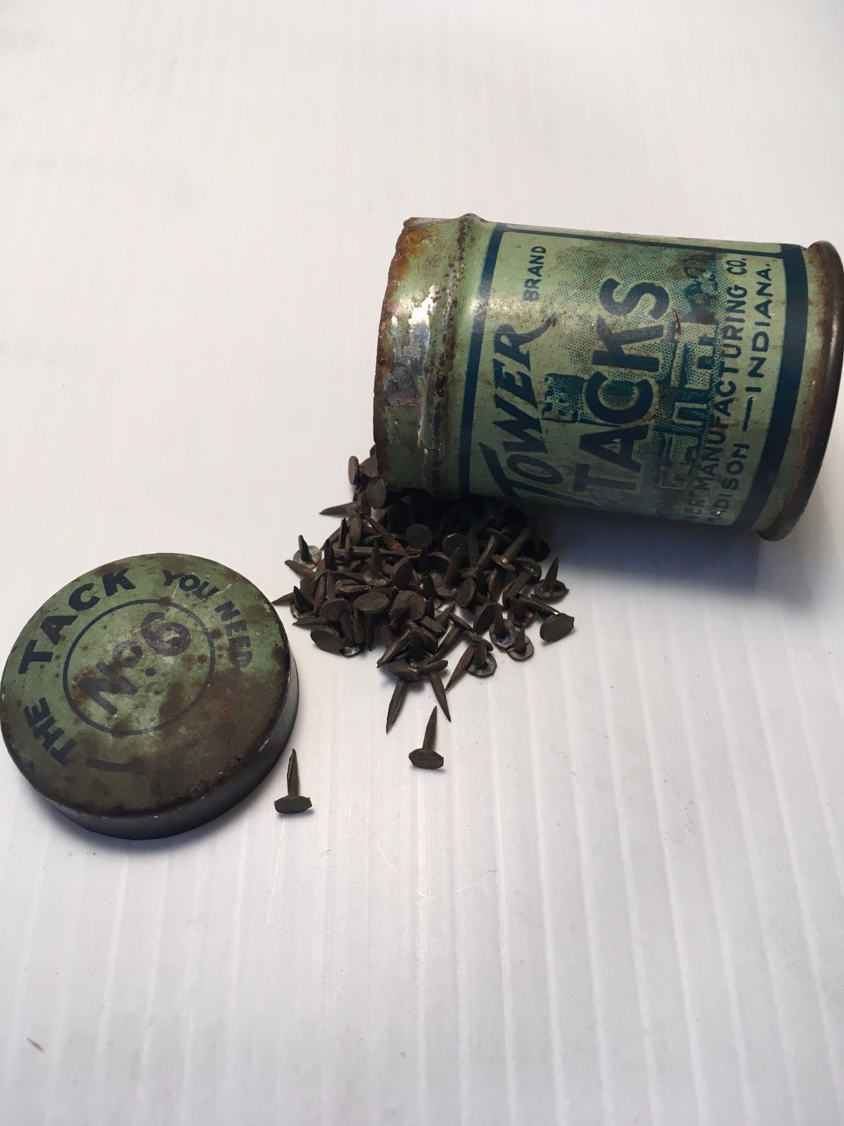 Title (ebay affiliate link): Vintage Advertising Tin-Tower Manufacturing Co.No. 6 Tacks- Madison, Indiana