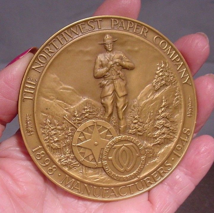 Title (ebay affiliate link): Commemorative Coin Paperweight Weyerhauser Northwest Paper 1898-1948 Brass Bronz