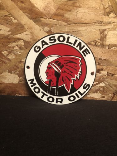 Title (ebay affiliate link): VINTAGE SCARCE RED INDIAN GASOLINE & MOTOR OIL 6" PORCELAIN METAL GAS SIGN