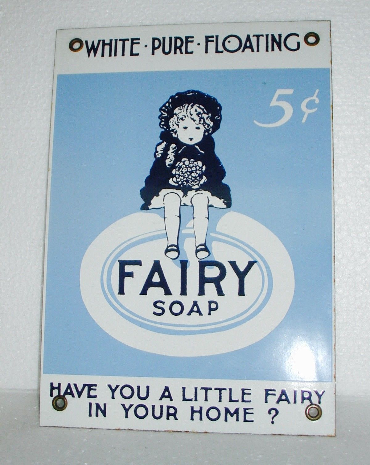 Title (ebay affiliate link): Vintage Ande Rooney FAIRY SOAP Porcelain Enamaled Metal Sign 10" x 7" Retro