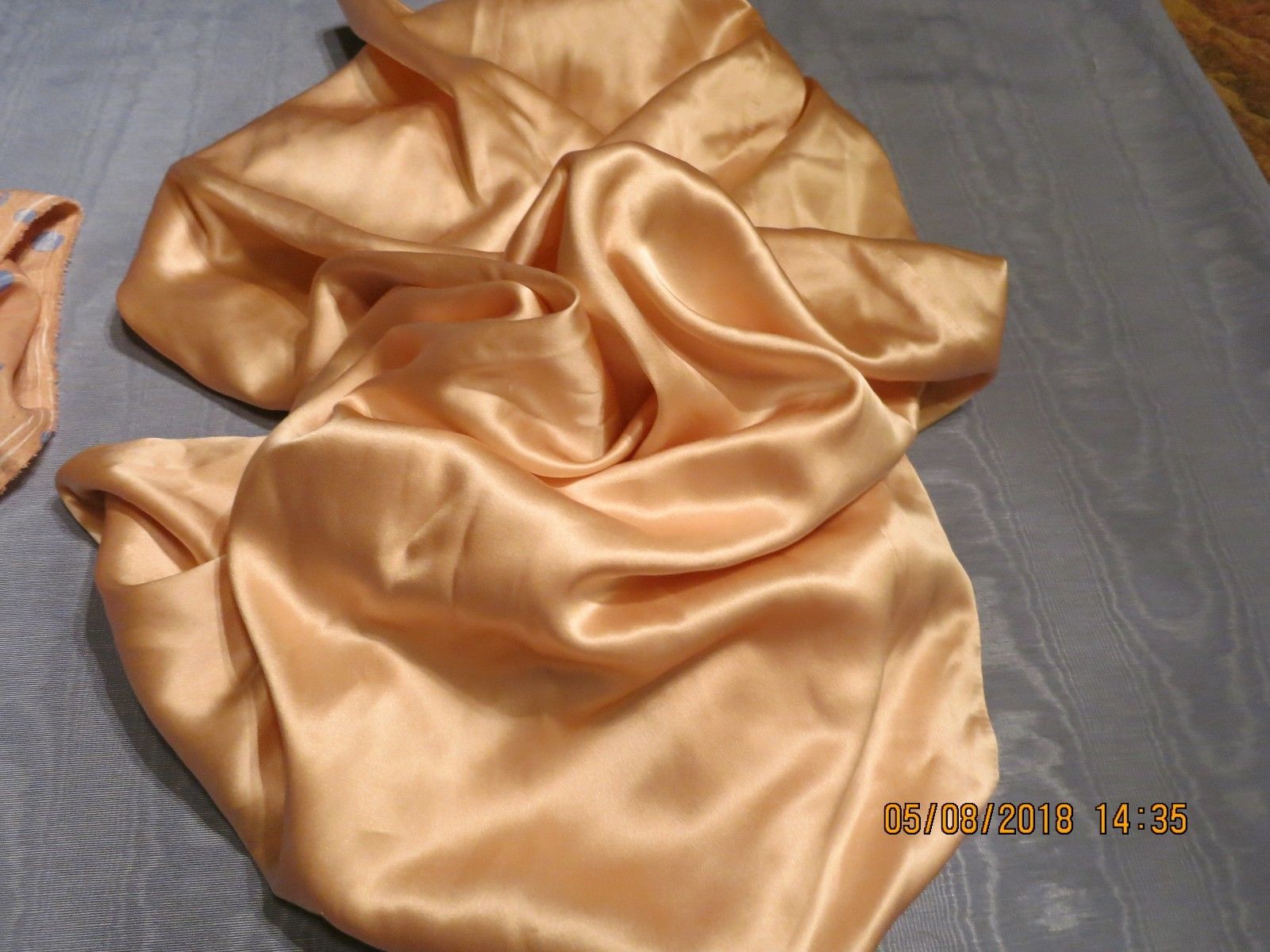 Title (ebay affiliate link): NEW ARR. LUSCIOUS SILK CHARMEUSE BARLEY PEACH SOFT SLINKY ANTIQUE DOLL DRESS