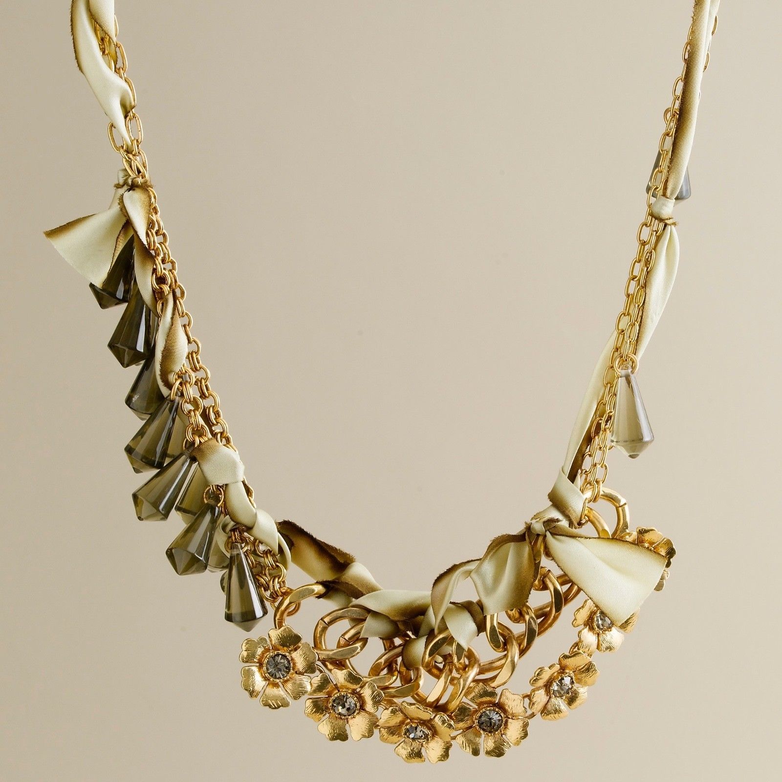 J.CREW Dogwood Decadence Necklace antique gold plated brass ribbon crystal stone