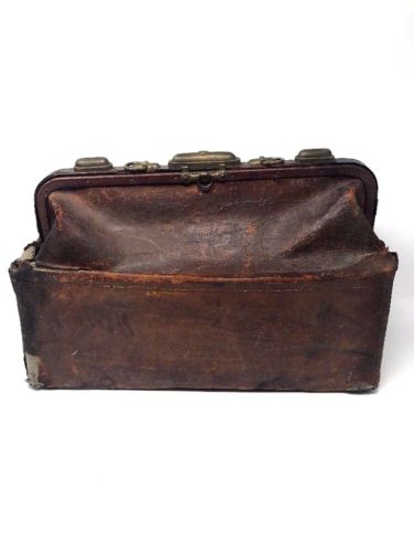 Antique Vintage Leather Medical Doctor''s Bag Satchel Large Old Brown Cowhide A3