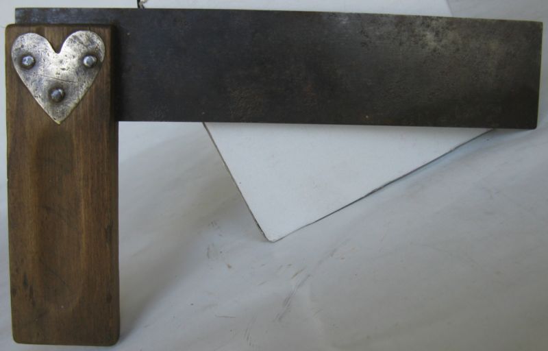 Title (ebay affiliate link): ANTIQUE TOOL 6" TRY SQUARE HEART SHAPED RIVET PLATE Unsigned Craftsman Made?