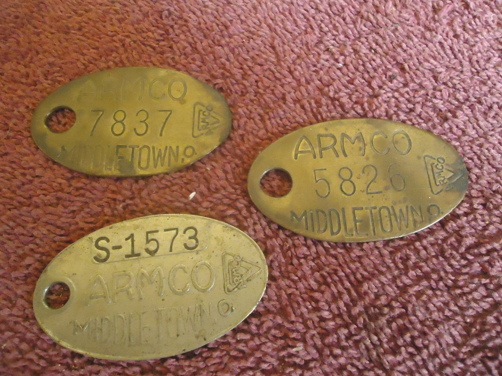VINTAGE (3) ARMCO STEEL TOOL CHECK TAGS ? MIDDLETOWN OHIO