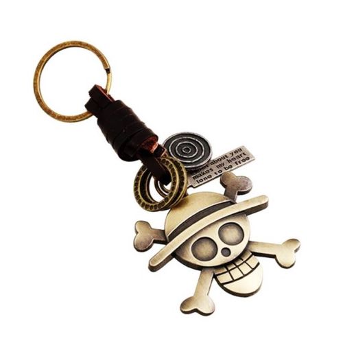 Title (ebay affiliate link): Skull Keychain Skeleton Cartoon Character Antique Gold Real Leather Punk Keyring