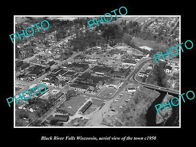 OLD LARGE HISTORIC PHOTO OF BLACK RIVER FALLS WISCONSIN, TOWN AERIAL VIEW 1950 1