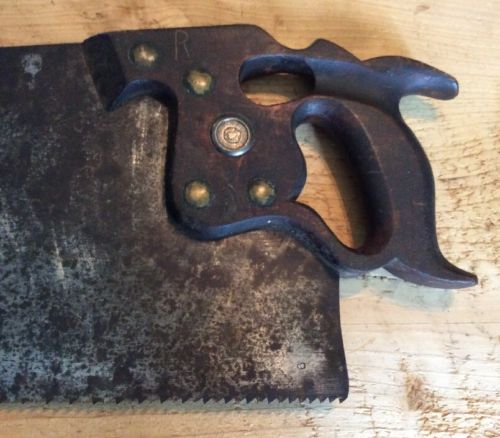 Vintage Henry Disston hand saw thumb hole D8 Heavy Skew Back no. 6 blade