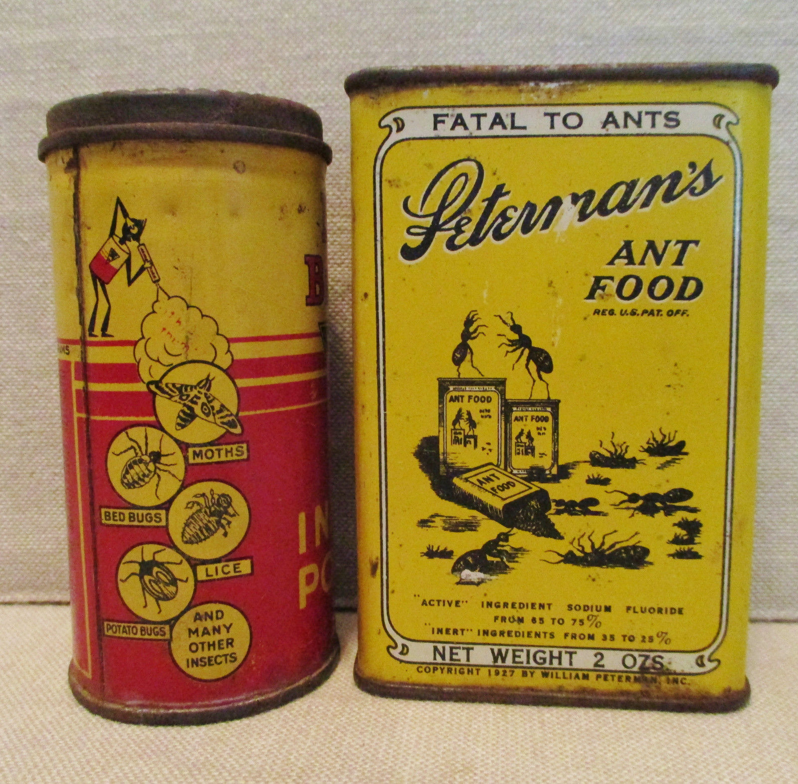 Vintage Advertising Tins-PETERMAN ANT FOOD-BEE INSECT POWDER-Household Bug Cans