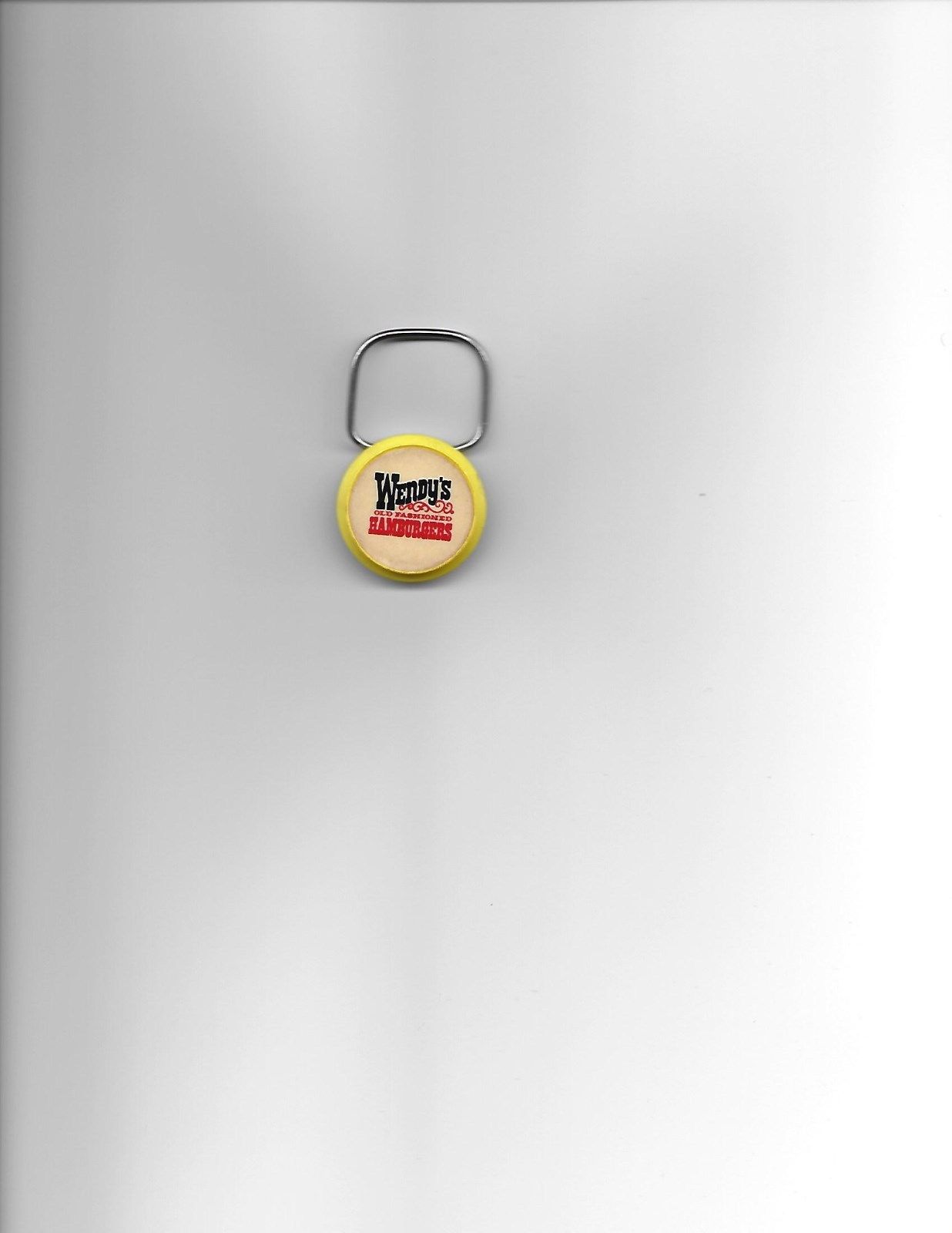Vintage Wendy''s Round Yellow Plastic Pull Ring Key Chain Advertising
