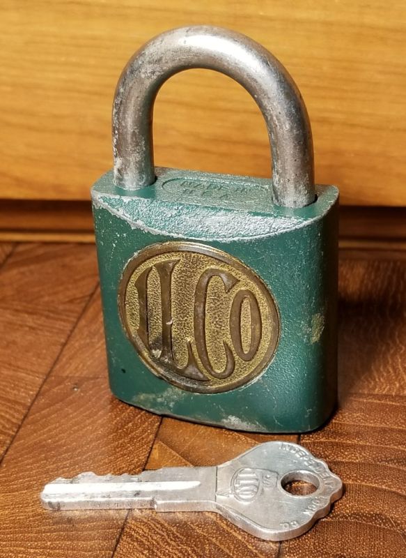 Title (ebay affiliate link): Antique/Vintage ILCO Independent Lock Co 320G Green Padlock W/ Key