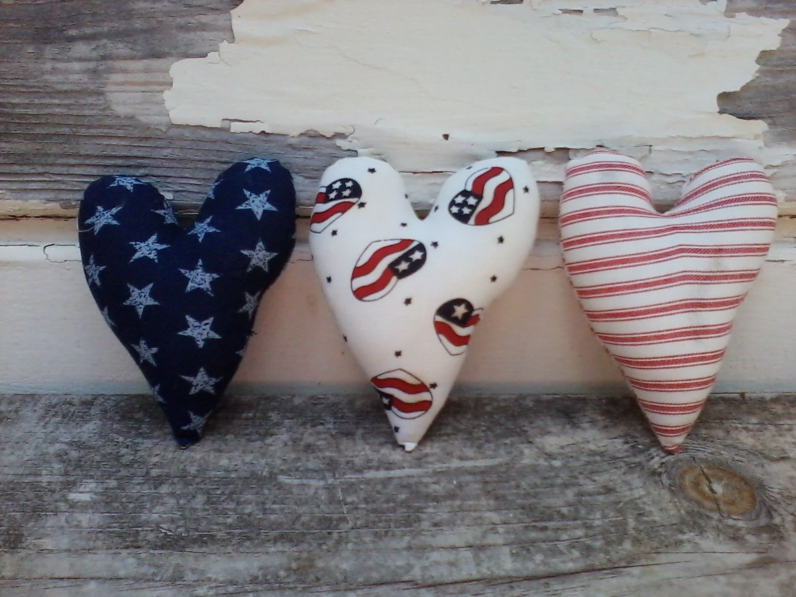 Title (ebay affiliate link): Primitive Americana Red White Blue Heart Ornies Bowl Fillers Decor Set Of 3