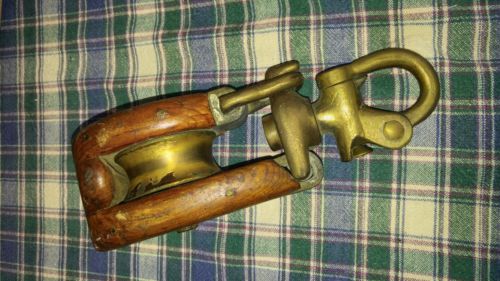 Title (ebay affiliate link): Antique Vintage Wooden Single Pulley Block and Tackle Brass?