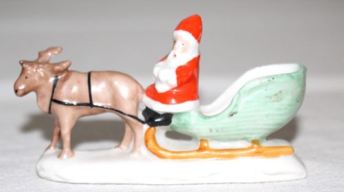 Title (ebay affiliate link): Bisque Moose pulling Santa in Sleigh. German Snow Baby figure. 1930s. Miniature
