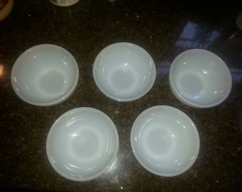 Title (ebay affiliate link): 5 Vintage Fire King Oven Ware White Milk Glass 5" Chili / Cereal Bowls EUC