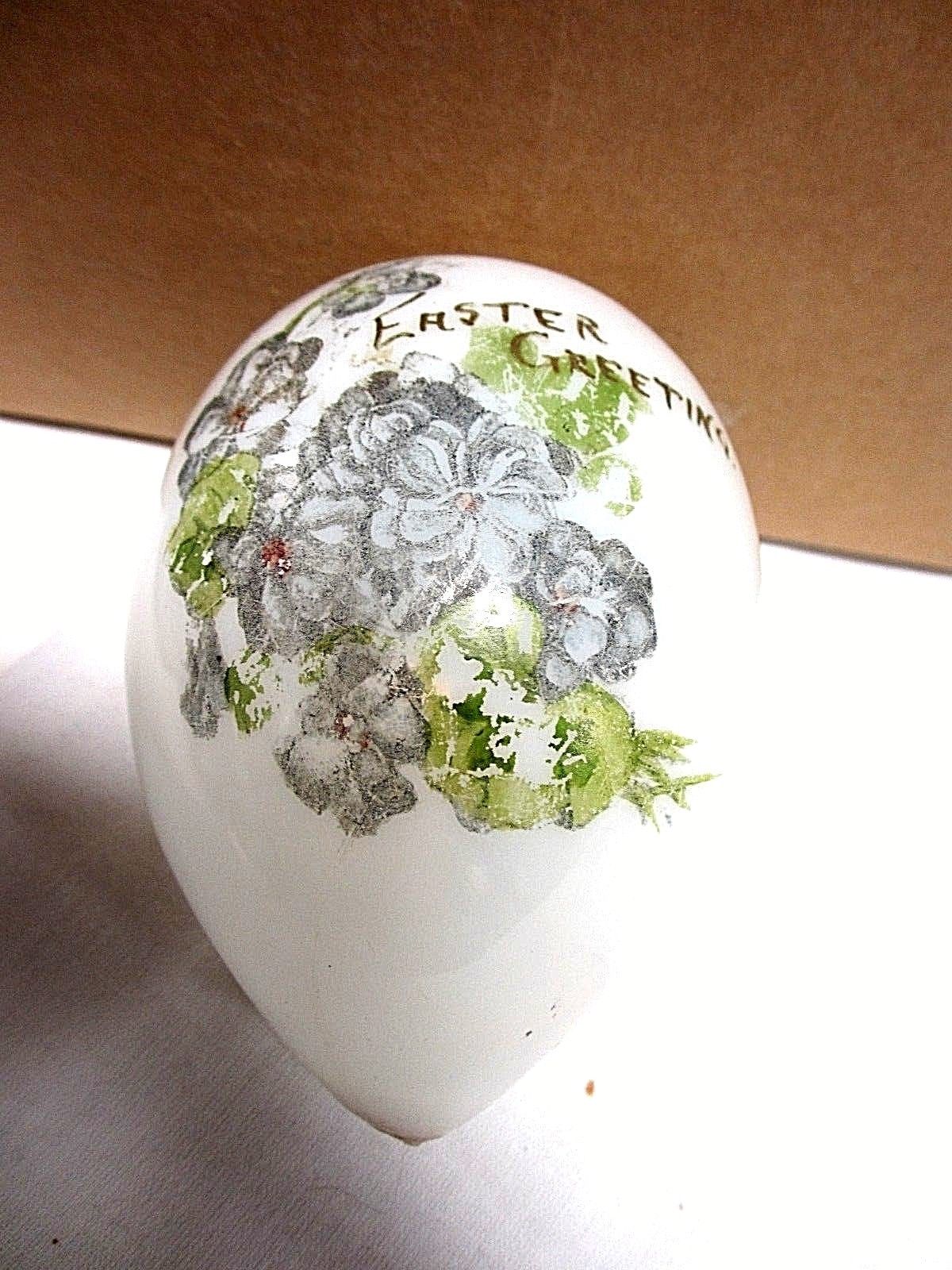 Vintage Antique Milk Glass Hand Blown Easter Egg Embossed Flowers & Easter