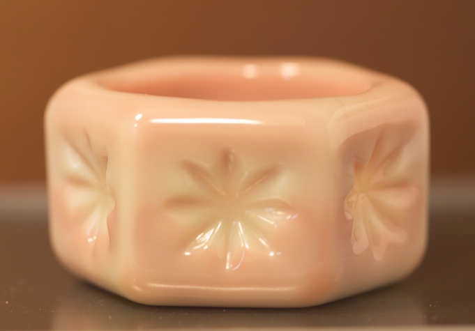 Title (ebay affiliate link): Stunning Burmese Custard & Pink Milk Glass Hexagon Open Salt Dish Dip Mosser WOW