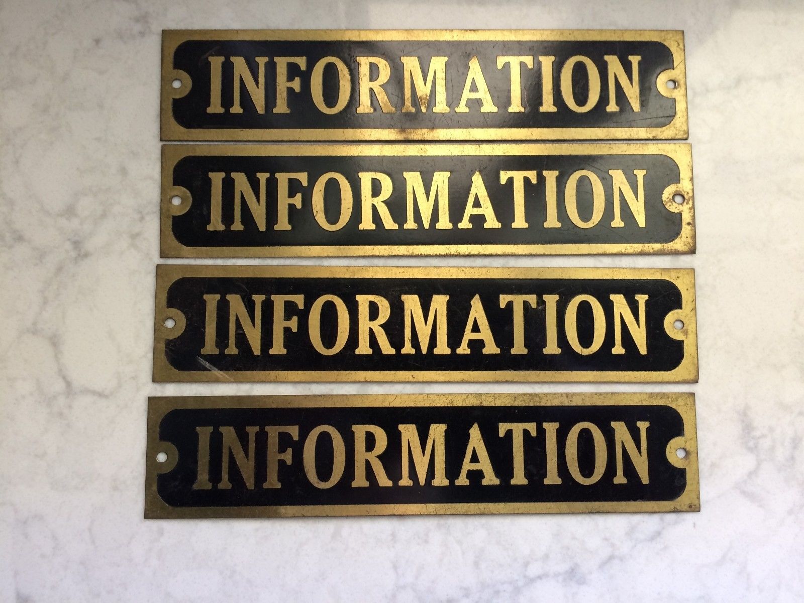 Vintage Brass Office Door "Information" Signs Lot of 4 Circa 1950 Business Sign